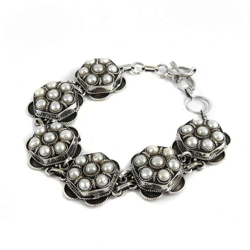 Tropical Glow!! 925 Sterling Silver Pearl Bracelet