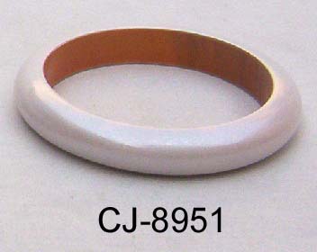 Very beautiful and enchanting handmade & hand painted wooden bangle in white colour with pearl effect. The inner diameter of the bangle is 65 mm; the breadth of the bangle is 1.25 cms 0.50 inch