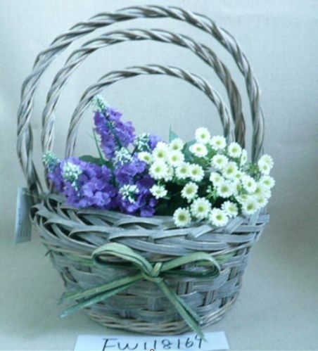 Willow handle weaven basket for flower & decoration. Beautiful outlook, good for envirment. FUNAN FANGLIU ARTS&CRAFTS CO.,LTD Add:Huanggang Town Funan County,Anhui,China Tel: 86-0558—6998000 Cel: 86-18005584189 Fax: 86-0558—6816998