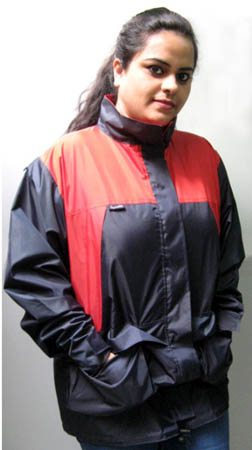 Comfortable functional double layered jacket made from tough nylon fabric. It is so designed that it has full opening zipper with wind flap. Two cargo pockets, velcro adjustable cuffs for weather proofing. Drawstrings at hood which is folded inside the color and on the waist and hem.