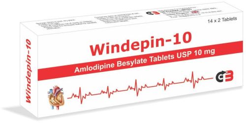 Amlodipine Besylate Tablets USP 10 mg Each uncoated tablet contains : Amlodipine Besylate USP Eq. to Amlodipine Excipients Indication: Hypertension and angina. Packing:14 x 2 Tablets