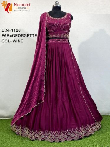Wine Georgette Lehenga Choli, Size : Free Size