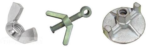 Made of malleable iron, it has a hexagonal head that facilitates use of a spanner to tighten it. The wings allow the nut to be either hammer tightened or levered with a length of reinforcing bar. Available in self color, galvanized and electroplated.