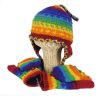 100% Wool, with fleece lining inside, stripe pattern cap with Mitten glove set. Best for winter Season.
