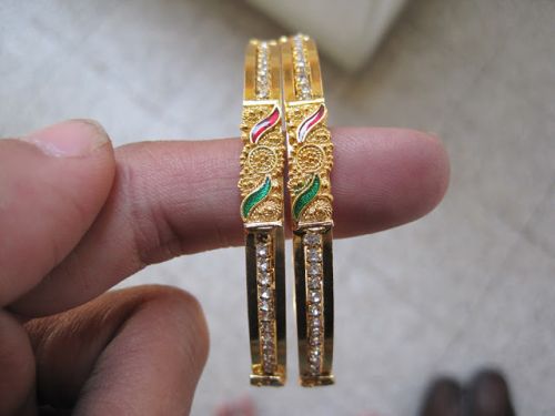 gold plated bangles. design no. - sk kk bg-147. price - inr 76 per pair. cif price - us$1.25 per pair. moq - 1000 pairs. shipping - 30 days after confirmed bank payment / lc. production capacity - 50000 pairs per year. port of loading - mundra / nhava sheva.