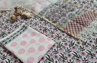 Handcrafted cotton salwar suits with pure kota zari dupatta