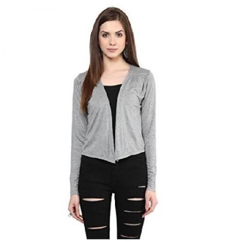 Layer your casual weekend look in style by wearing this grey melange shrug. Wear it over any contrast coloured top to look perfect.