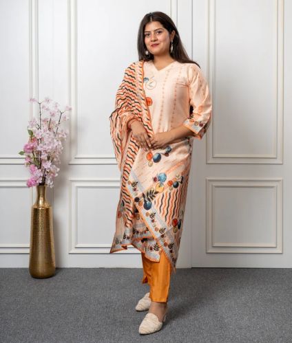 Womens Chanderi Kurta Pant And Dupatta Set?