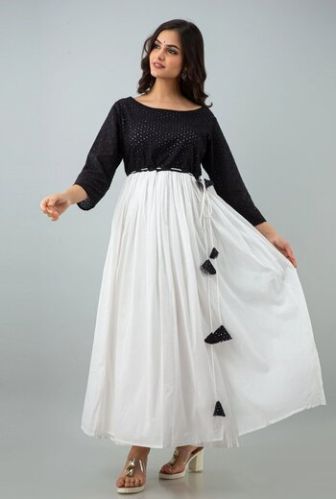 Womens Cotton Flared Black And White Dress