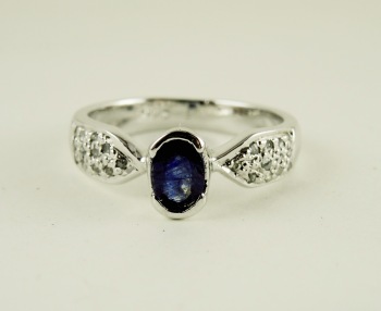 Rose Cut Diamonds Engagement Ring, Main Stone : Sapphire