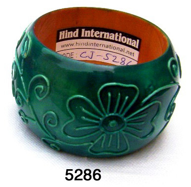Very beautiful and enchanting handmade, embossed and hand painted wooden bangle in green colour. The inner diameter of the bangle is 65 mm; the breadth of the bangle is 5 cms 2 inches.