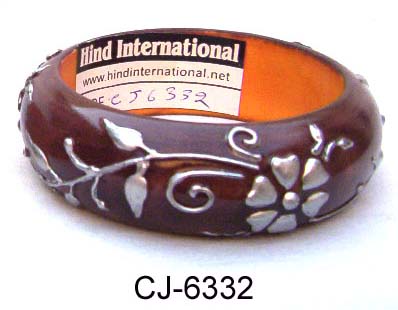 Very beautiful and enchanting handmade, embossed and hand painted wooden bangle in dark brown and silver colour. The inner diameter of the bangle is 65 mm; the breadth of the bangle is 2.50 cms 1 inch.