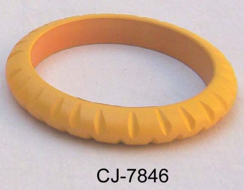 Very beautiful and enchanting handmade, hand carved and hand painted wooden bangle in yellow colour. The inner diameter of the bangle is 65 mm; the breadth of the bangle is 1.25 cms 0.50 inch