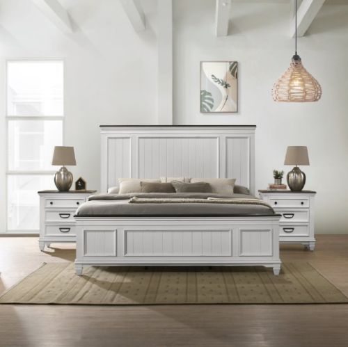 Wooden Bed with Night Stand, Color : White Standard Modern