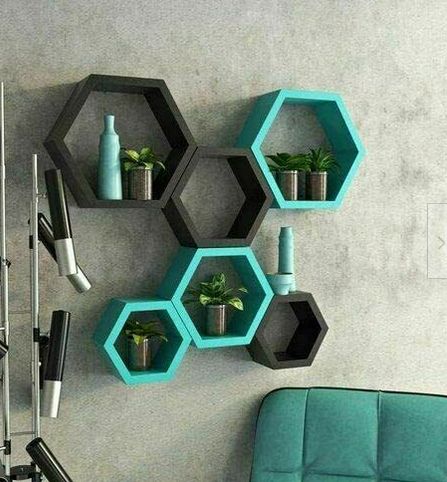 6 pcs Shelves Wall Floating Hexagon Plant Shelves Home Decor Shelf for Bedroom