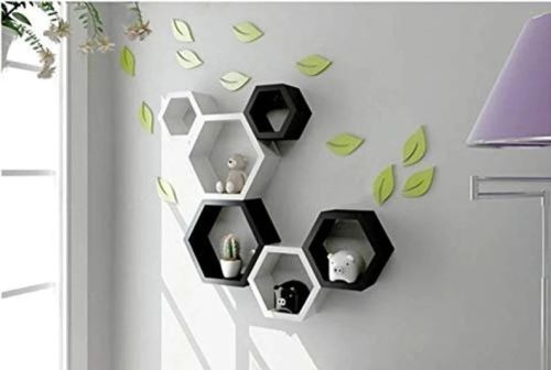 Hexagon Shape Shelf, Hanging Wall Shelf, Wooden Wall Shelf, Rustic Display Shelf, Rustic Wooden Shelf, Set of 6