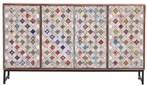 Wooden Carved with Tile Fitting Sideboard, Weight : 54.30 Kg