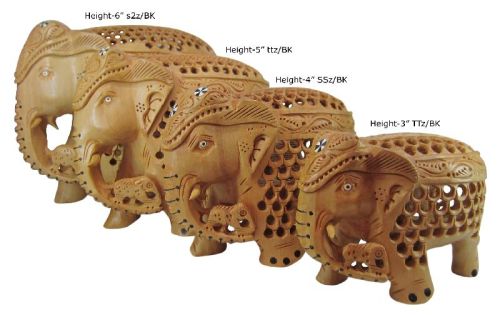 Wooden elephant in elephant is a product which houses an elephant in an elephant's belly which is visible through see through grill and is made using best quality seasoned wood.Very intricate carving is done on wooden elephants using specialized hand tools by very skilled craftsmen