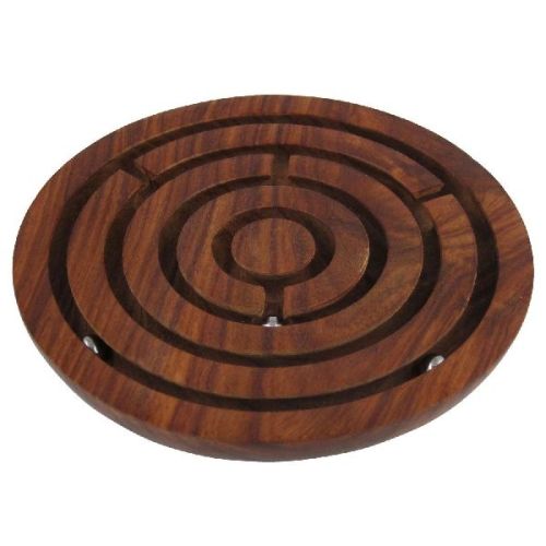 this is round labyrinth, beautiful gift item for both boys and girls. The labyrinth is made of pure natural wood and has three small size steel balls that remain in the maze. The kids would enjoy not only by adroitly placing all the three balls in the central groove, they would also enjoy keeping it as a collectable item. Make a gift of this labyrinth to kids to help them develop better coordination between mind and hands.