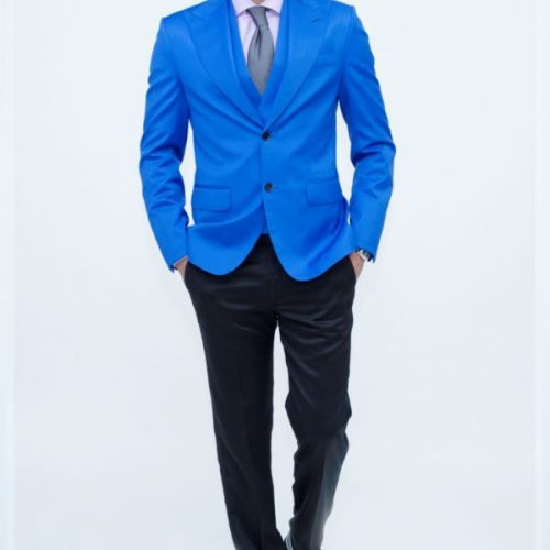 Royal blue wool blazer will make a striking addition to your formal wardrobe. Impeccably tailored in Whyte’s art room from a fine wool, this single-breasted piece with waistcoat is bolded by tangible large lapels. Padded shoulders provide shape and structure to its sharp profile, while the full lining ensures it slips on smoothly over shirting. Build up a great look with black trousers and any bright shirt completing it with tonal ties or accessories.