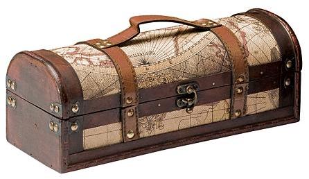 Fine can travel in style in this chic box, featuring a vintage design with plenty of old world charm. Its aged wood finish and antique accents enhance the worldly look—a great gift for connoisseurs who appreciate the finer things in life. Wood and faux leather construction. Brass buckle closure. Securely accommodates one standard 750 ml bottle (not included). Wood bottle insert. Item