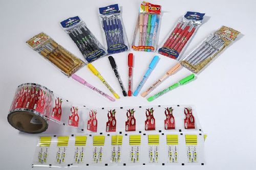 Heat Transfer with high gloss metallised and holographic effect are used/recommended for decoration of plastic/steel pens and stationary. As pens come in a variety of colours special white pigment is used on foils to retain the image clarity and legibility of the print. The Foils are avaliable for ABS/SHAN/PP/Steel based on the barrel used.