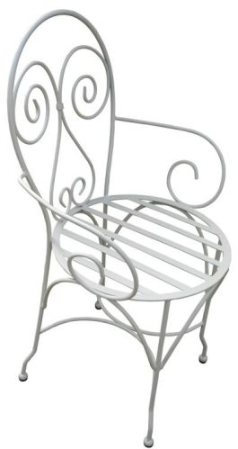 We are offering wrought iron armchair triqui 30. finish: wrought iron chair structure, solid iron, stackable system, antirust treatment, powder coating, with cushion. dimension: height 4590 cm, width 46cm.