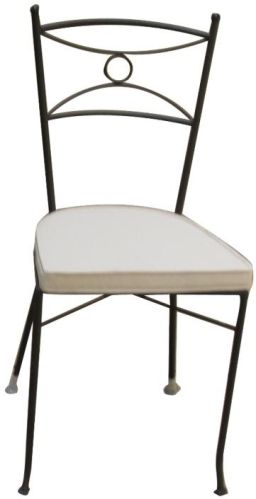 finish: wrought iron chair structure, tube iron, stackable system, antirust treatment, powder coating, with cushion. dimension: height 45/97 cm, width 42cm.