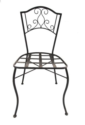 We are offering wrought iron chair triqui 29. finish: wrought iron chair structure, solid iron, stackable system, antirust treatment, powder coating, with cushion. dimension: height 4598 cm, width 42cm.