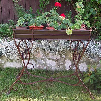 Wrought iron - planter jf5 l113 x l45 x h83 description: this ornamental flower pot, with cast iron ornamental details, offers a beautiful way to arrange flowers in your garden or greenhouse, putting his mark through utility and quality to the space. Dimensions: l113 x l45 x h83 weight: 22 kg