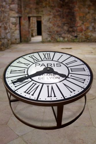 Wrought Iron - Table Clock O 105xh45, iH Description: With the metallically table and frame and with a unique design that reminds of the times that have gone by, this piece fits in every space. Charming and elegant the clock table stops the time and allows you to live the atmosphere of the foretime and the present joy of the most beautiful moments in the company of family or friends. Weight: 18 kg Dimensions: O 105 x h