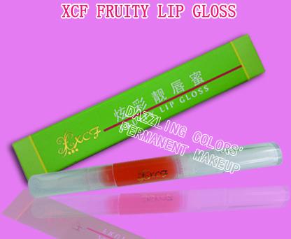 We offer fruity lip gloss, lip tattooing, dazzling colors,permanent makeup. Xcf fruity lip glosslip tattooingdazzling colorspermanent makeup training name:xcf fruity lip gloss volume :10ml 0.35fl.oz price:80 it contains bfgf factors ,and heals officiently impaired cells. it is suitable for these , whose lips are dry ,chapped and dim . Use it everyday to keep lips moisturized , smooth and glossy . It helps lips preserve the color after lip shading procedure ina week