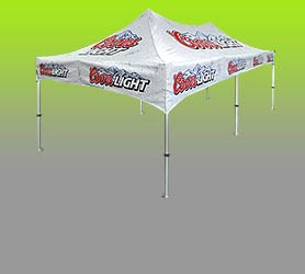 Knowing you have that kind of brawn supporting your canopy is reassuring, but your tent needs to look good too. It's all about image and KD Kanopy has you covered with edge-to-edge full-color 1,000 dpi digital printing. Vacuum heat-sealed screen-printed graphics are a second option for less complicated graphics. Both processes are accomplished on quality 500 Denier polyester fabric available in a range of 17 bold colors. All printing and sewing is done in-house so we can assure you of the best quality possible and provide a 1-year warranty on your top.