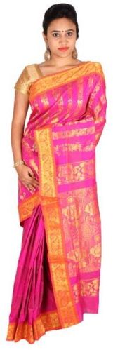 We are offering "karishma designer kodi jeaquard border fancy silk saree pallu jari pallu work with elegant design border flower jari border body flower shaped kodi all over the body blouse running blouse pattern