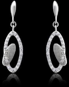 Nickel free Sterling Silver Earrings with Rhodium Polish + Ice Matt Finishing studded with White CZ - These are two interlinked ovals that glisten with cubic zirconia embellishment. With one loop crafted from rhodium polished sterling silver and the other studden with cz these earrings feature a stylish finish that oozes sparkle.
