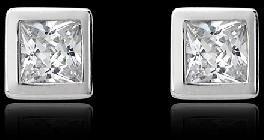 Nickel free Sterling Silver Earrings with Rhodium Polish & studded with White CZ - This glittering pair of square shaped earrings are finished with rhodium polished sterling silver, and is a timeless piece of jewellery that will last for years to come.