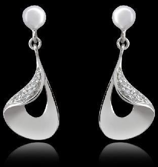 Nickel free Sterling Silver Earrings with Rhodium Polish & studded with White CZ - These sterling silver earrings have a little twist. A perfect accessory for the one who likes to stand out in a crowd. Embedded with Glittering cz stones and a beautiful rhodium polish, these earrings are perfect for any occasion.