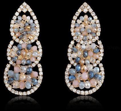 Hand Crafted from Nickle free Brass with Rhinestones & Beads - With a unique pattern, these three level earrings give an elegant appeal to the wearer. You can pair these with matching beaded cuffs and ring to complete the look.