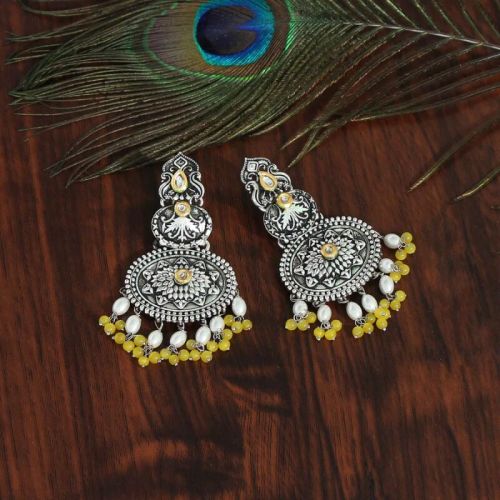 Yellow Color Stone Dual Tone Oxidised Silver Earrings?