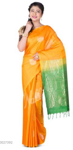 Yellow Dual Tone Coimbatore Silk Saree with Zari butta on body and Without border. Includes Unstitched Blouse. Occasion: CeremonyPartywear.