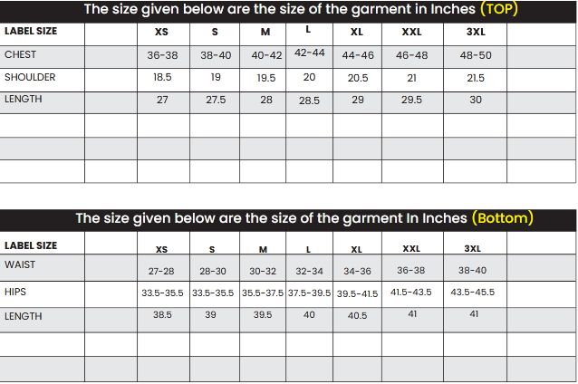 However, the actual chest measurement in the garment is 44” to allow for comfortable wear.