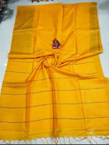 Mustard Staple Semi Silk Saree, Width : 5.5 Meter
