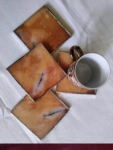 Yellow Quartz Coasters (Set of 4) Yellow Quartz is an energetic crystal that can boost the spirit and bring you joy and creativity. This Yellow Quartz Coaster Set makes a unique and extravagant housewarming, hostess gift. These Natural Agate Coasters are sure to add style as well as utility to your living space. No Additional Hardware is Required. Material: Yellow