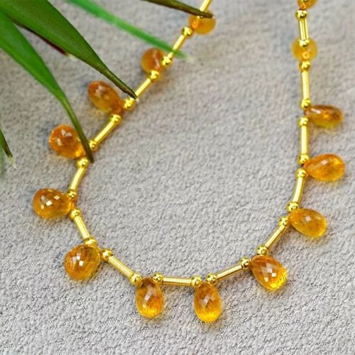 Yellow Sapphire 6.5-8.5mm Faceted Drops Shape 9 Inch Long Gemstone Beads - This AAA Grade Faceted Drops Shape Side Drilled Yellow Sapphire (Heated) Gemstone Beads is Originated From Sri Lanka and Cut & Polished in Jaipur (India) - Total 17 Pcs. on 9 Inch Long Strand