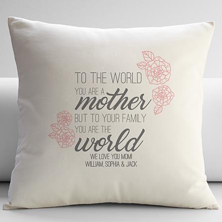 Did you know that more phone calls are made on Mother's Day than any other day of the year? We may set aside one day a year to celebrate mothers—but we all know that moms always make the world go round. Don’t miss this opportunity to let her know just how amazing she is with a pillow that says it all! Exclusively from RedEnvelope. 100% cotton canvas with polyester fiberfill. Choose blue, natural or red in 18” or 22” sq. size. Personalize with any 1 or 2 line message up to 35 characters each. Item