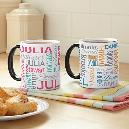 A Personal Creations Exclusive! Avoid any confusion during their morning rush. With our signature mug, there will never be any question which coffee is theirs. Made of ceramic. Microwave and dishwasher safe. Personalize with any first name up to 12 characters and last name up to 15 characters. Holds 11 oz. Available in pink and blue. Item