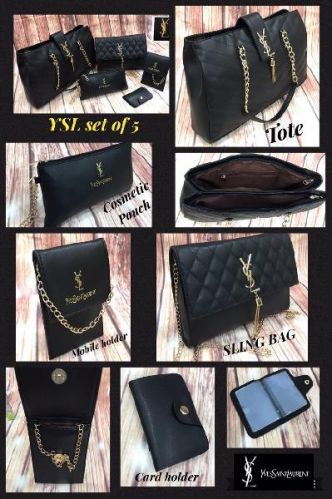 YSL Combo bags YSL combo bags (set of 5) 1.Tote 2. Cosmetic pouch 3. Sling bag 4. Mobile cover 5. Card holder No minimum order quantity.. More colours and designs available pls send your inquiry or orders to daiseesboutique@gmail.com or whatsapp :