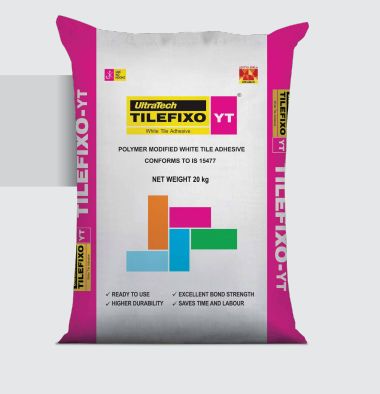 Contact SupplierUltraTech TILEFIXO YT is a white cement-based, polymer modified, high quality tile adhesive to fix medium format Italian marble, porcelain, glass mosaic and all translucent tiles on floor & wall in internal areas and can also be used for external floor applications.