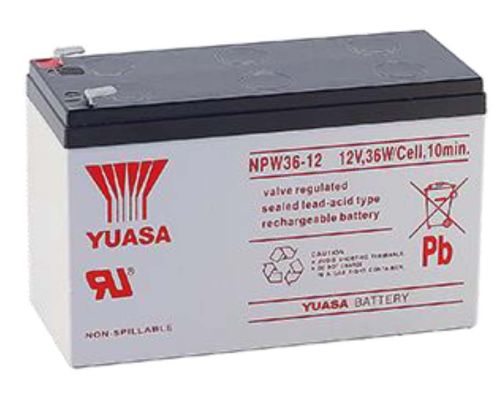 The 12 volt, 7 amp hour Yuasa NPW36-12 sealed lead acid battery is designed for use in UPS, alarm, and other similar applications.