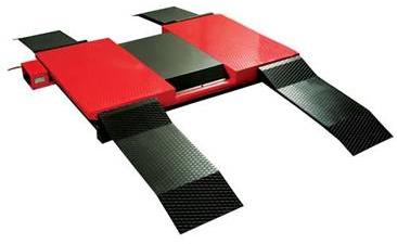 The climbing ramps can be removed to facilitate balancing operations with wheels mounted, and it has a stopping level to assist operators positioning the vehicle before lifting. The pedal control allows the platform to be stopped at the required height when moving either up or down.